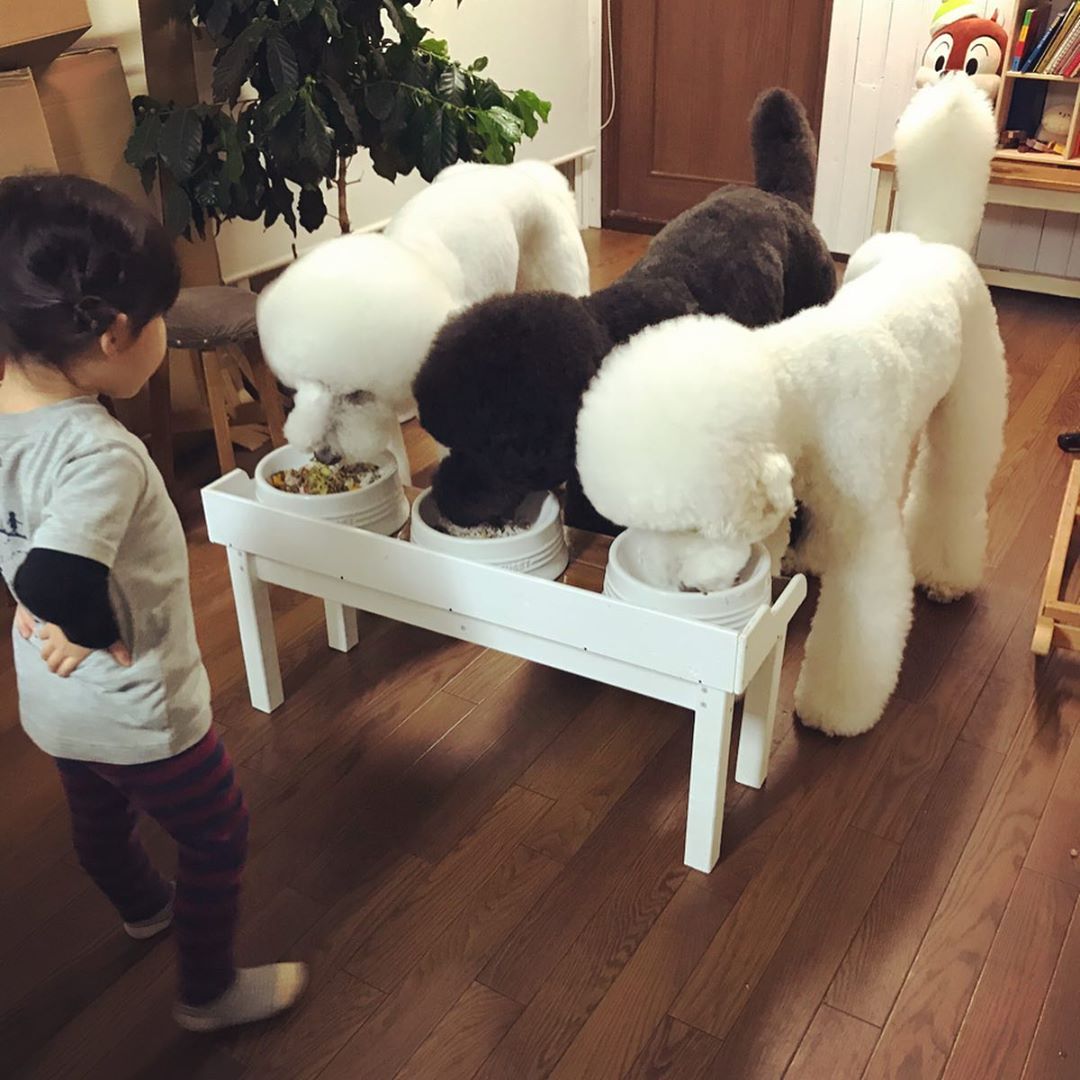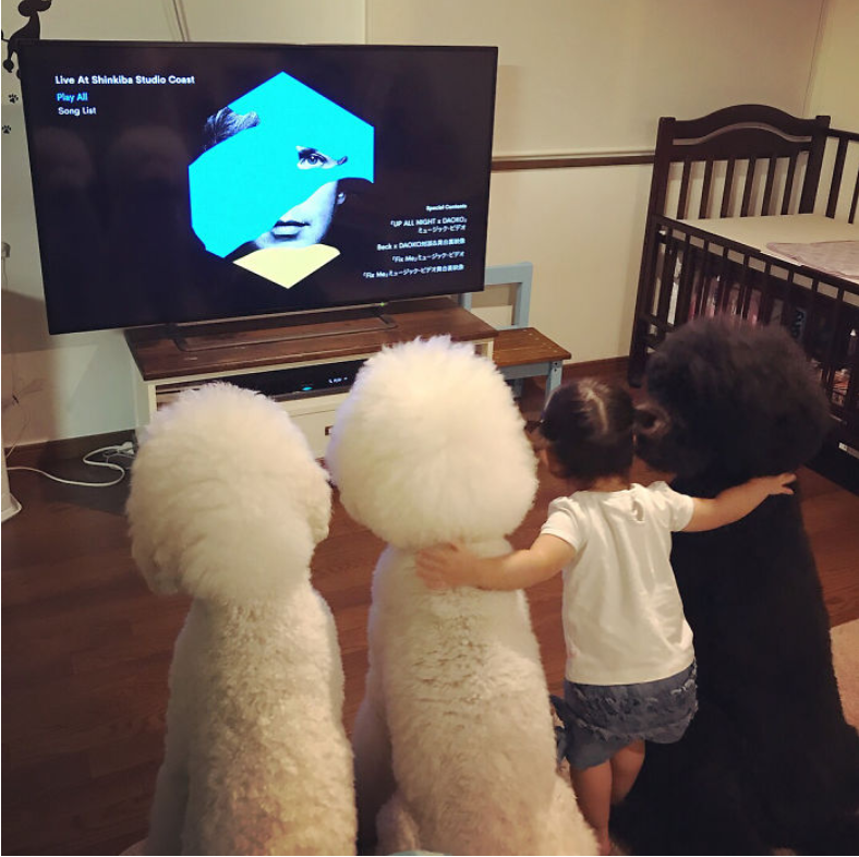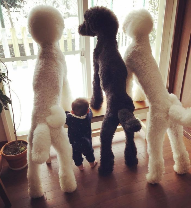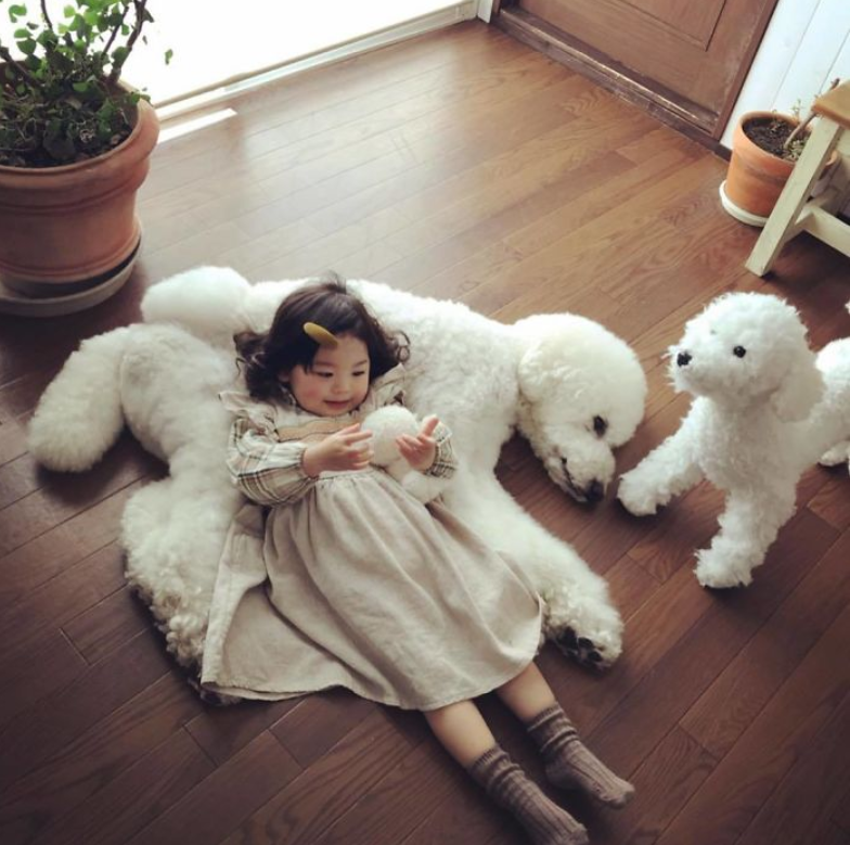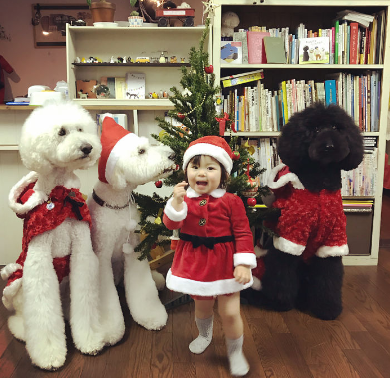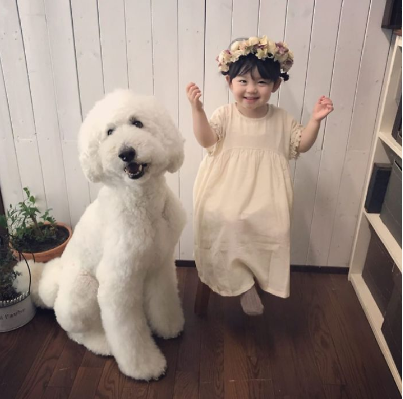 검정색 푸들이름이 쿠(QOO), 흰색 푸들이 리쿠(Riku)와 가쿠(Gaku). 그리고 귀여운 손녀가 마메(Mame), 손자는 무기(Mugi)입니다. 댕댕이들과 함께하는 귀여운 손녀, 손자들의 일상 사진들을 만나보시죠.