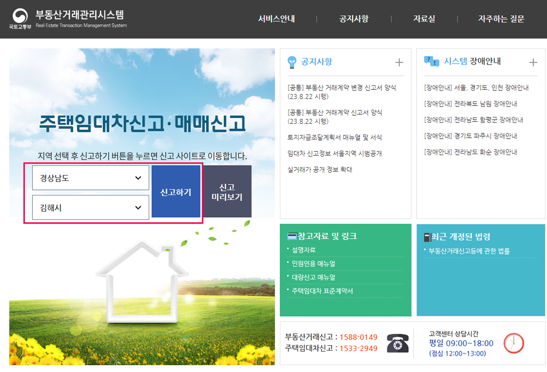 1. 국토교통부 부동산 거래 관리시스템 홈페이지 접속