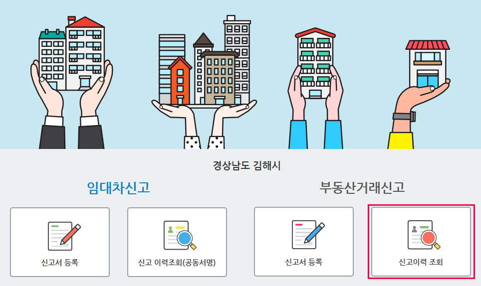 부동산 거래신고의 신고이력 조회를 클릭합니다.