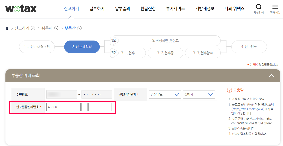 위택스에서 취득세 신고서를 작성하다보면 위와 같이 신고필증 관리번호가 필요한데요. 오늘은 아파트 취득세 신고시 필요한 신고필증 관리번호를 확인하는 방법을 소개하려합니다.
