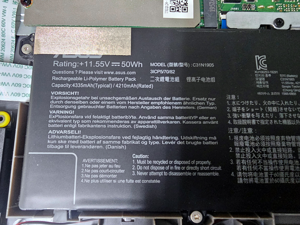 배터리에 모델명이 적혀있는데, 제 노트북의 경우에는 C31N1905네요. 모델명으로 검색해서 배터리만 구입해 교체하면 끝입니다!