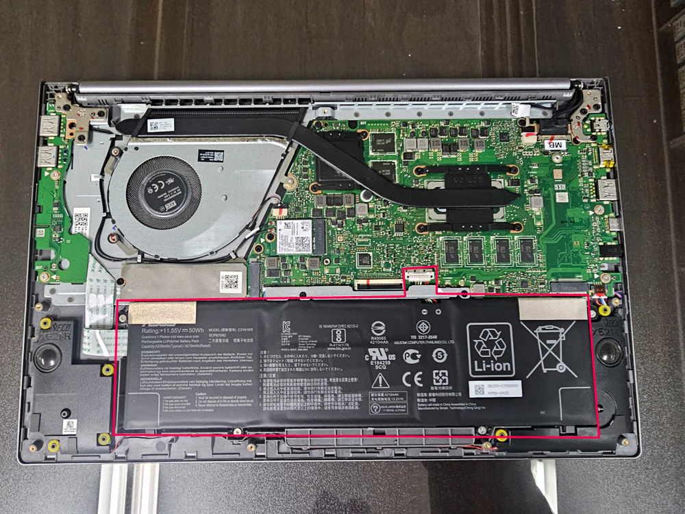 저도 현재 배터리 주문해 놓고 배송만 기다리고 있는 상황인데요. 배터리도 피스 6개만 풀고 메인보드에 연결된 잭만 꽂아주면 됩니다. 조립은 분해의 역순!